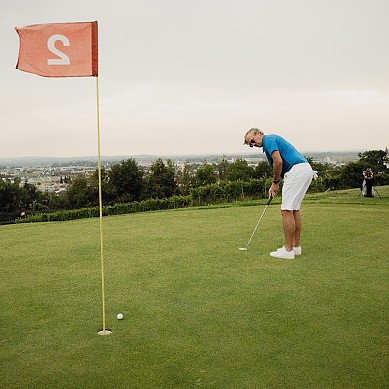 Gemeinsam mit dem ÖGV und dem bekannten Golfplatz Architekten Mark Rothermund, hat der Hausherr und Eigentümer Andreas Langeder einen wunderschönen, kurzweiligen, für jedermann offenen Platz geschaffen. Über den Dächern Pergs und durch die Weinreben können Golferinnen und Golfer aller Spielklassen, eine feine und kurzweilige Runde Golf genießen.